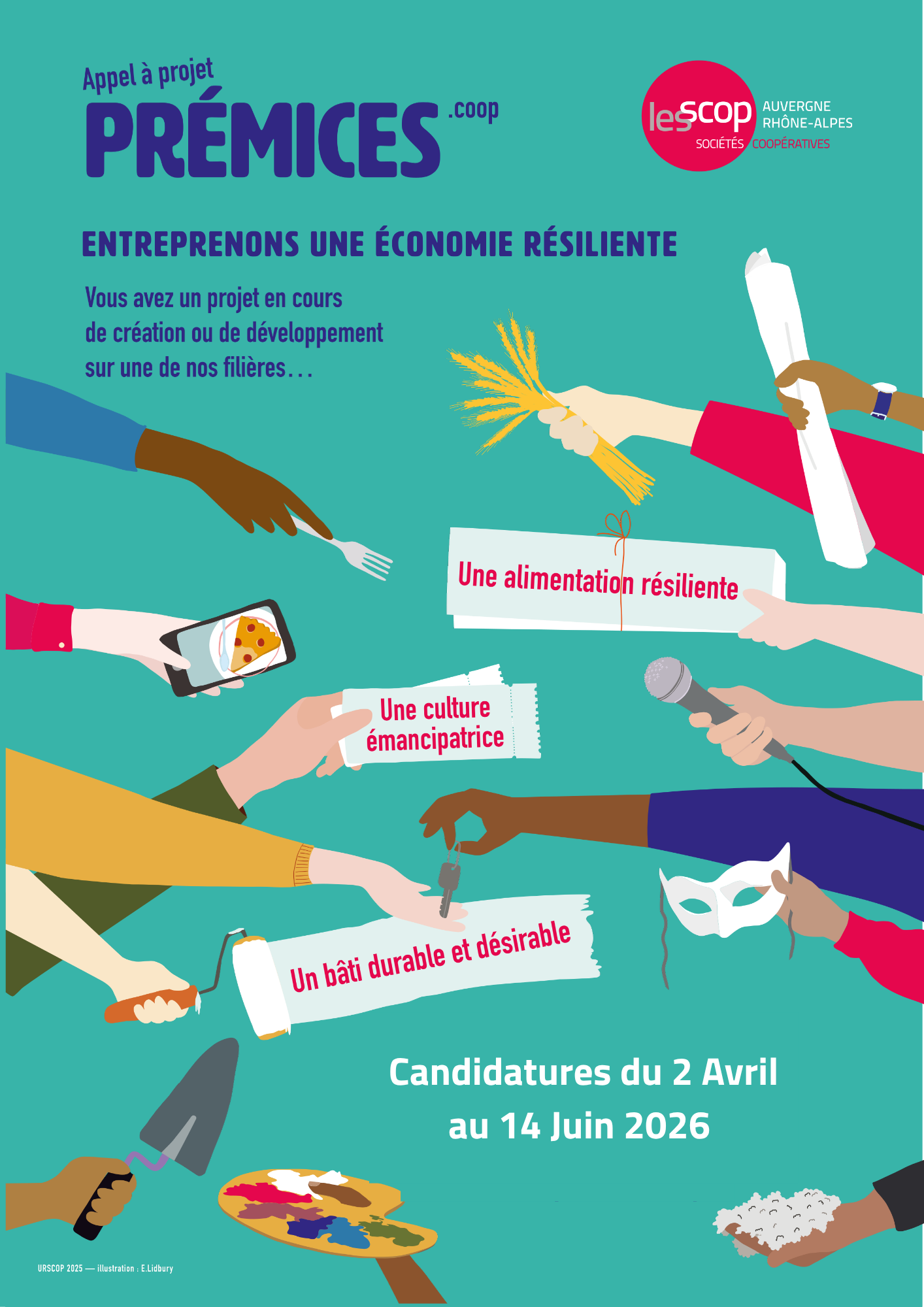 Vous trouverez ci-dessous les logos de Prémices et de l'URSCOP, mais aussi un post type pour publier sur les réseaux sociaux. Si vous vous sentez inspiré·es, vos modifications sont les bienvenues, appropriez vous l'appel à projet ! Il y a également une affiche que vous pouvez imprimer et mettre en évidence dans vos lieux communs.